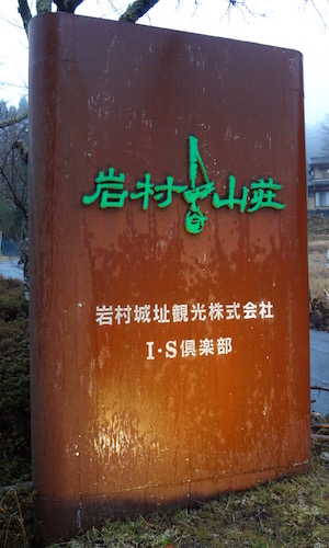 そして左側には岩村山荘の看板がみえた。地図によると岩村駅から1.7kmの距離だが登り坂が続いたので少し疲れた。