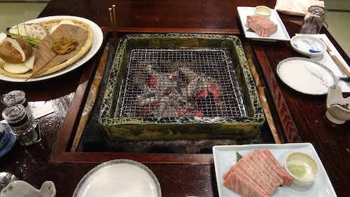 この囲炉裏端での料理を戦国料理と称するのだろう。