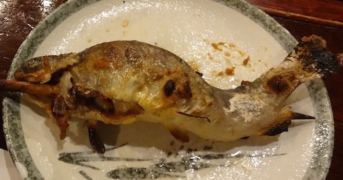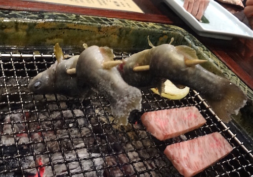 先ほどまで生け簀で泳いでいたイワナも豪快に焼いている。