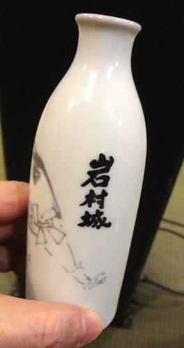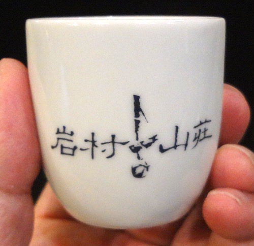 熱燗の徳利には岩村城が、おちょこには岩村山荘の文字が入っている。