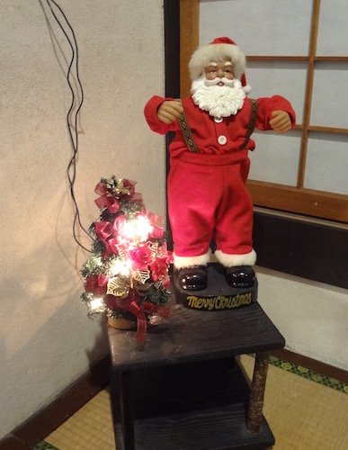 ロビーの一角にはサンタクロースの飾りがありクリスマスムードである。