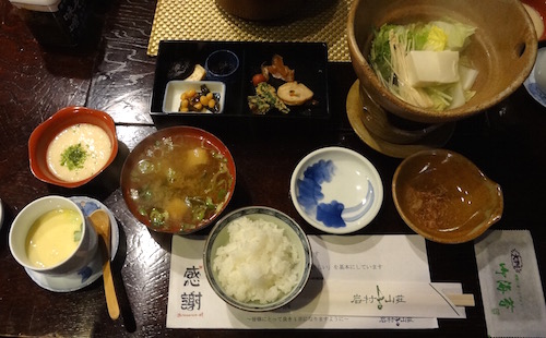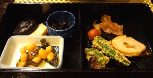 湯豆腐、赤だし、焼きのり、茶わん蒸し、とろろ以外に写真のような様々なおかずが出てきた。