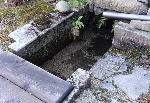 この用水を天正疎水と言いますが、400年を経た今も、家々の下を流れ、生活のために役立っています。