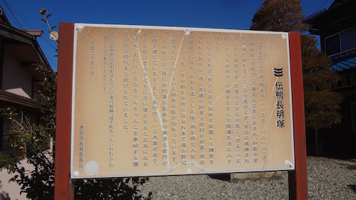 口伝によれば、衆人の前で秘曲を披露して鎌倉を追われた長明は、遠山景廉の好意で岩村の両家(現在の領家)に逃れ、半年を過ごした後、病を得て入寂したといい、「思いきや 都を余所に はなれ来て 遠山野辺に 雪消えんとは」という辞世の歌が伝わっている。
