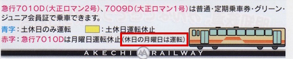 よくよく見ると「休日の月曜日は運転」となっていた。念のため駅員さんに確認すると、今日は運転しているとの返事を得てホッとする。