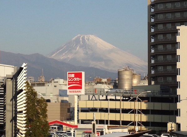 わずか16分で三島に着いた。ホームからは富士山の姿がきれいに眺められた。