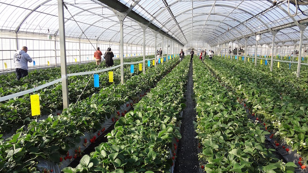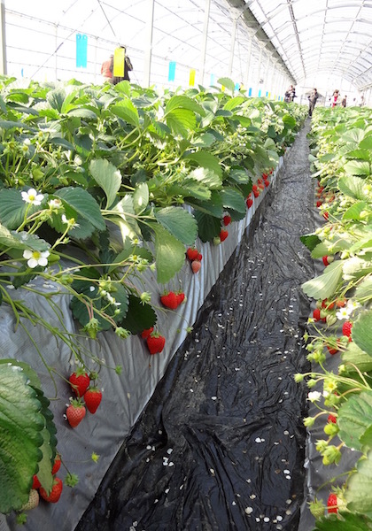 こんな感じで通路の両側においしそうなイチゴがなっていた。50個くらい食べたかな? かなり満足した。
