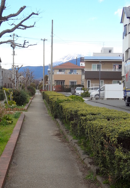 進行方向に富士山が見え隠れしている。