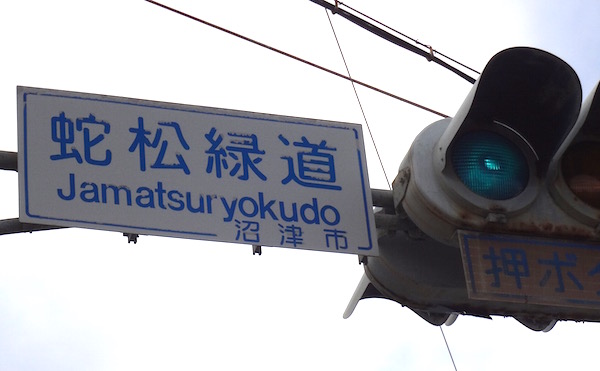 交差点の名前にも「蛇松緑道」としっかりと書かれている。地図の(8)の場所。