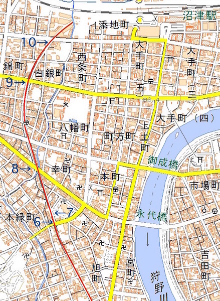 大場から三島を経て沼津へ移動する。