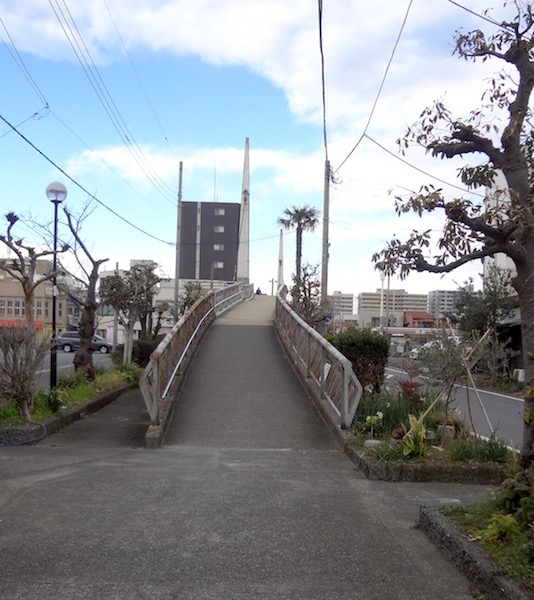すると歩道橋に差し掛かった。地図の(9)の場所である。