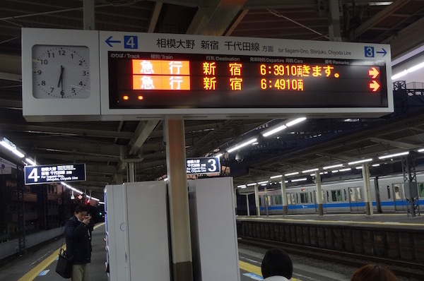 伊勢原駅6時39分発の急行新宿行きに乗る。