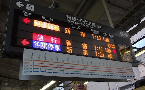 新百合ヶ丘駅で7時15分発の快速急行に乗り換える。