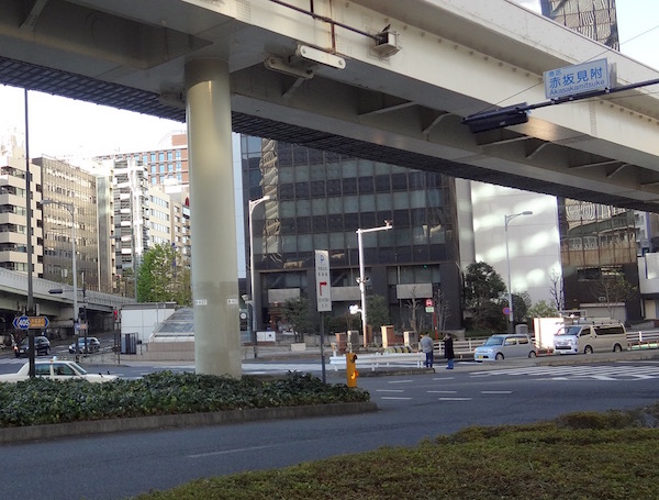 赤坂御門跡から赤坂見附交差点方面を見る。