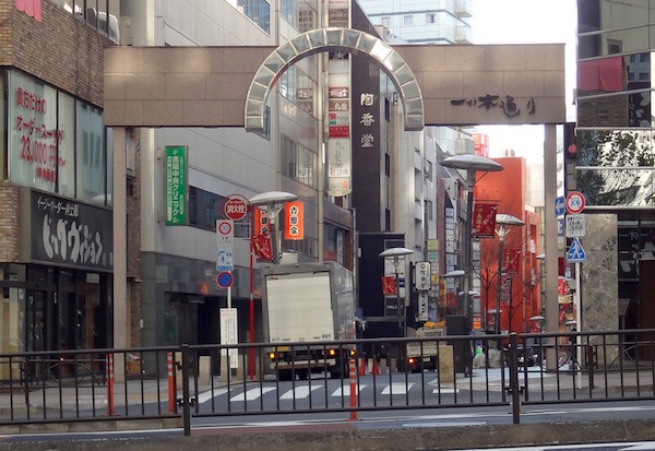 豊川稲荷の手前で右に下る坂は九郎九坂という。