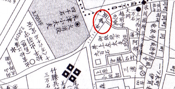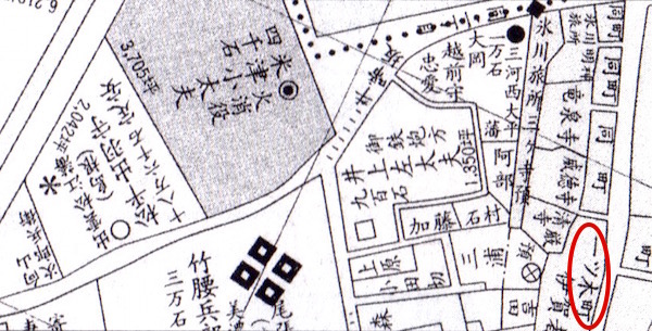 江戸情報地図にもここに一ツ木町があったことが記されている。