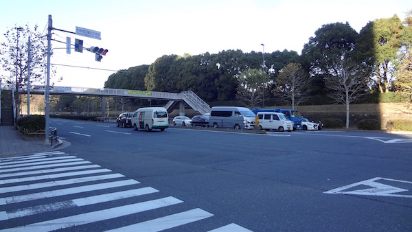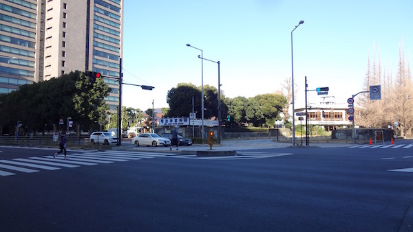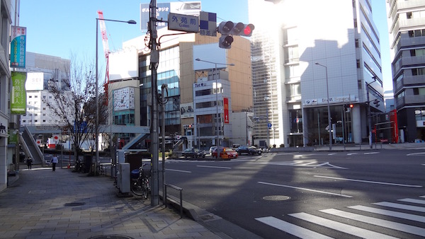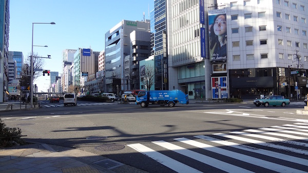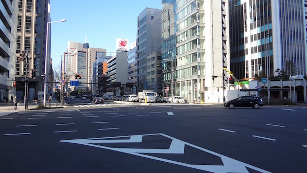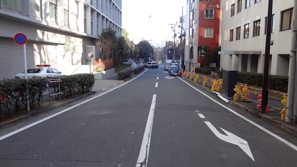 横断歩道の上からの眺め。左斜め前方の道を進む。