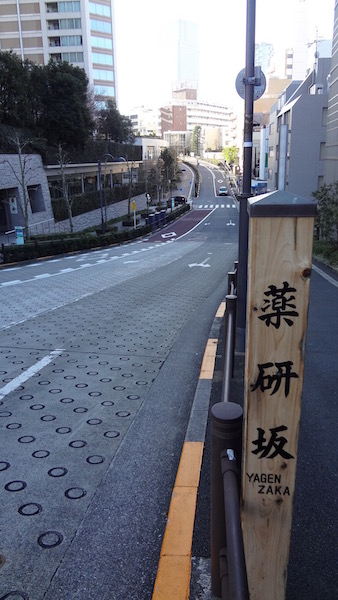 道路を挟んだ左側を見ると「一ツ木通り」という看板が見えた。ロス・インディオス&シルビアのベストヒット♪別れても好きな人♪(1979年)の2番に「ちょっぴり寂しい乃木坂 いつもの一ツ木通り」という歌詞があったのを思い出した。へぇー、ここだったのか。