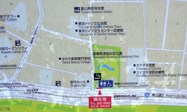 公園の隣にはカナダ大使館がある。大使館があるということはここが赤坂役所のあった場所かもしれない。