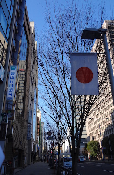 今日は成人の日で祝日。日の丸が掲揚されていた。