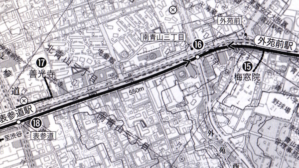 ここが南青山三丁目交差点。2018年10月には児童養護施設(港区子ども家庭総合支援センター)の建設に地元住民が反対というニュースがあったが、このあたりなのだろうか。