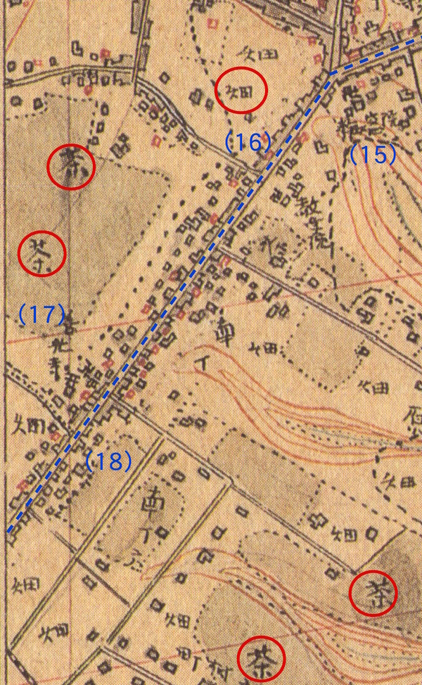 明治地図ではこのあたりにも茶畑が多い。街道沿い以外には住居はそれほど多くない。