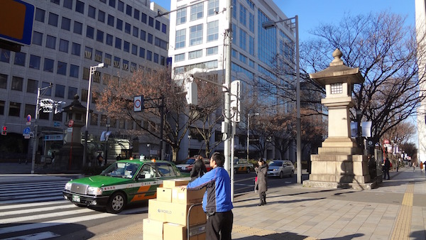 表参道交差点を進む。このあたりは日曜日の朝にもかかわらず人通りも多い。