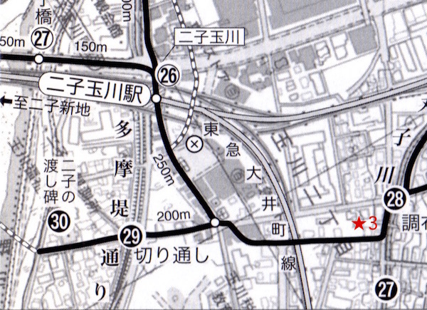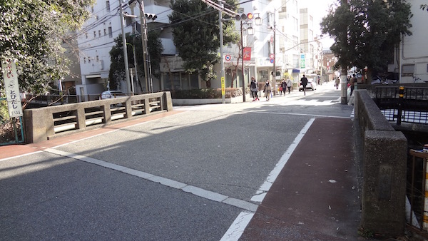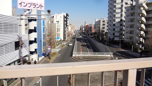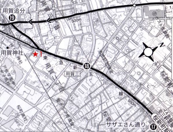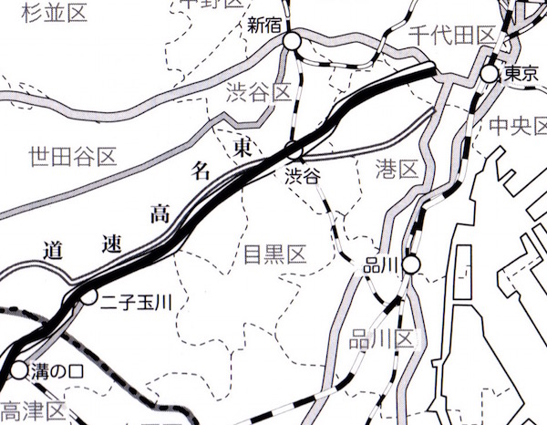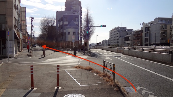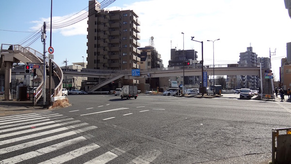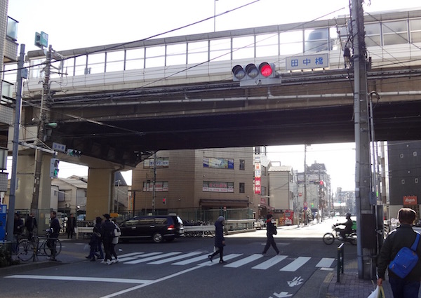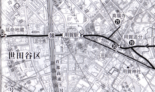 地図(18)の田中橋交差点に来た。高架部分は首都高速3号線だが、地上にも交差点がある。