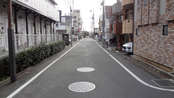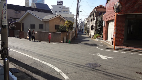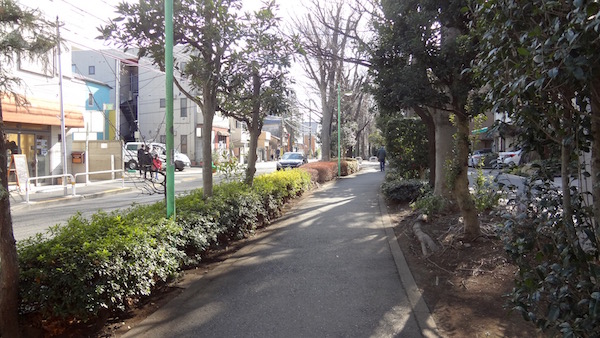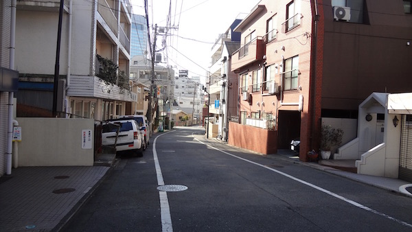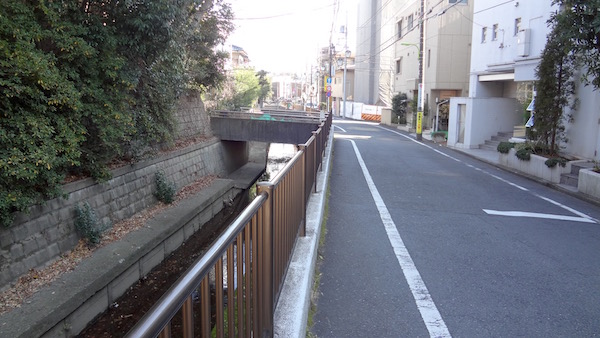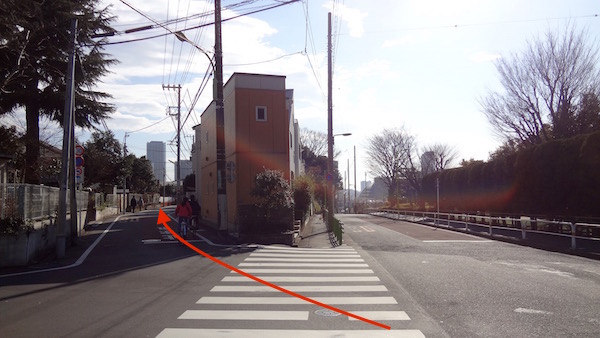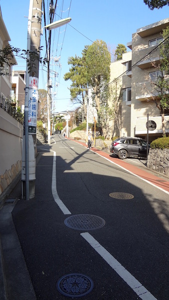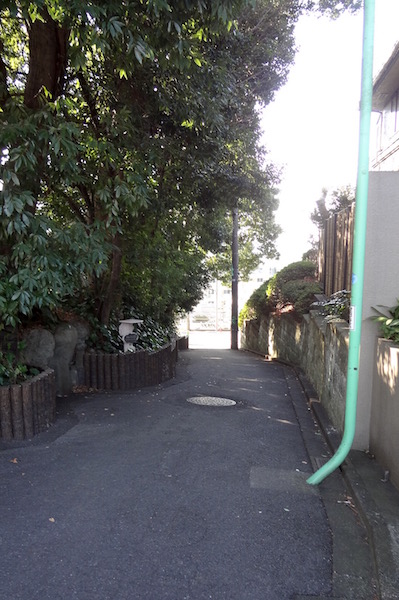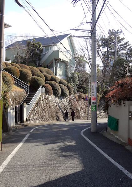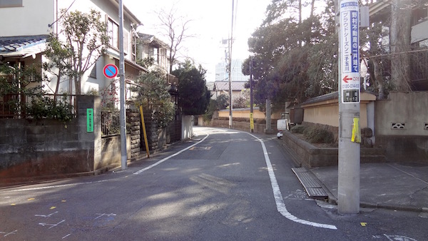 行火坂を今度は下り、行善寺坂へ戻って、後ろを振返るとこんな感じでかなりの高低差がある。おそらくここも多摩川の河岸段丘なのだろう。