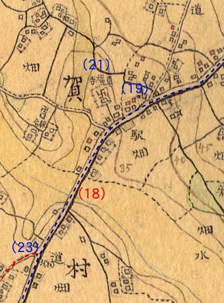 単調な道を進む。平成地図の(18)より手前あたりだろう。