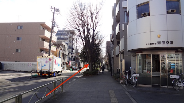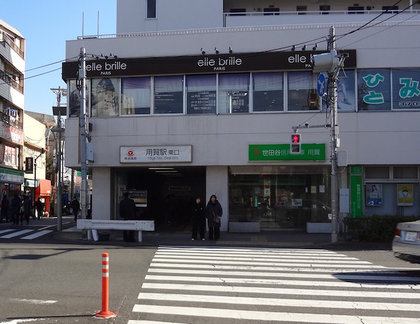 右側には交番がある。交番の横の階段を下ると用賀駅。