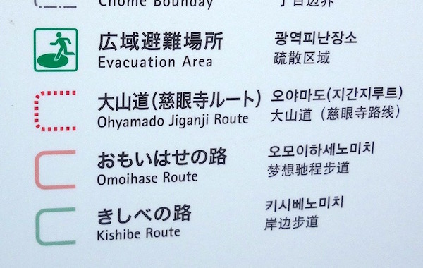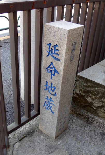 今回歩いている新町・行善寺線は延命地蔵のある道を直進する。斜め右に行くと上町・慈眼寺線(白地に黒文字番号)になる。