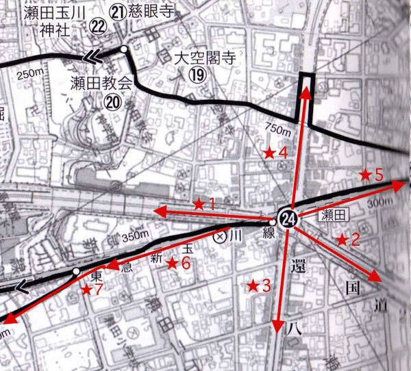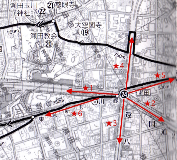 ★5から(24)の瀬田交差点に進み、★6の道を進む。