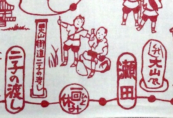 手ぬぐいにも「大山街道 二子の渡し」と書いてある。