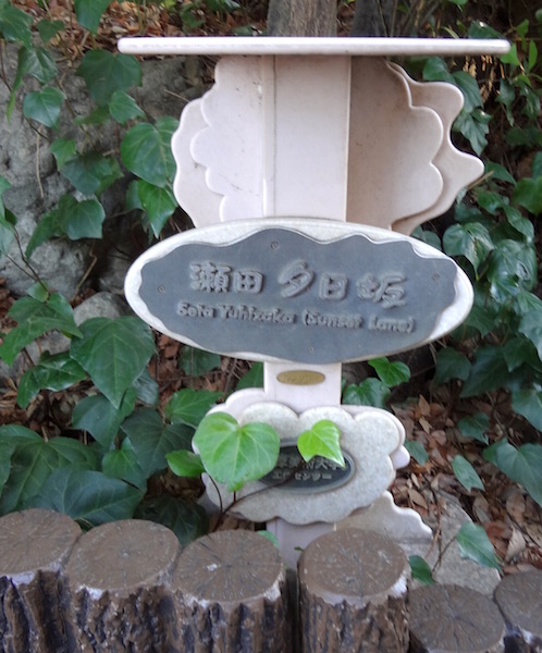 「瀬田夕日坂」と命名されていた。明治時代の地図をみるとこのあたりの大山街道は北から南へ向かっており、進行方向右手は西になる。おそらく昔は夕日がきれいに見えた場所だったのだろう。