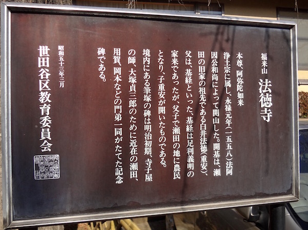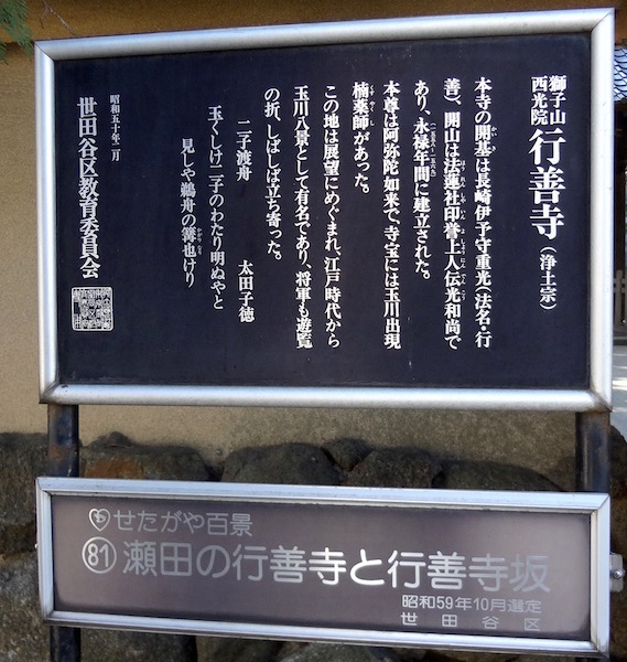 瀬田の行善寺と行善寺坂が「せたがや百景」に選定されている。