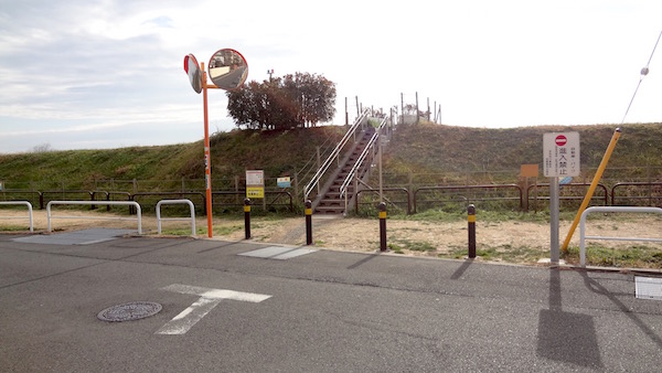 現在の堤防には階段があった。二子の渡しの碑がどこにあるかわからないので探してみる。