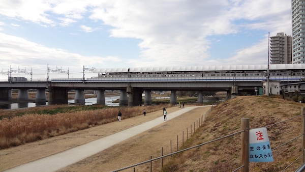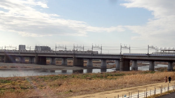 右手をみると東急田園都市線の列車が多摩川を渡っている。