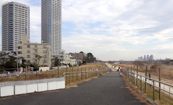 反対側をみると、二子玉川駅周辺のタワーマンションと、遠くの方には武蔵小杉のタワーマンション群が見える。