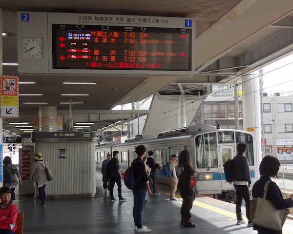 相模大野で江ノ島線に乗り換え。5分の待ち合わせで各停江ノ島行きに乗る。