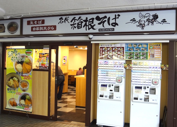 改札外にある箱根そば中央林間店で朝食にしよう。