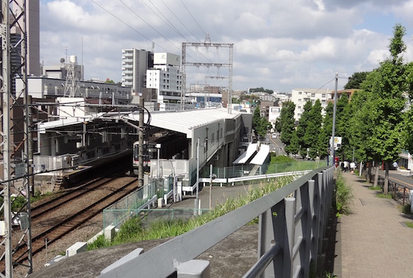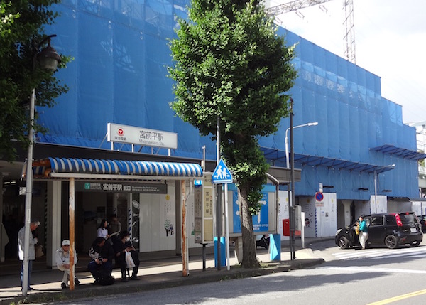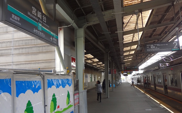 ここが宮前平駅で、ホームを覆う屋根が見えている。