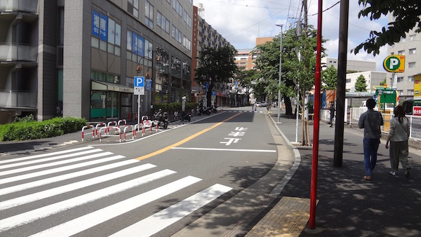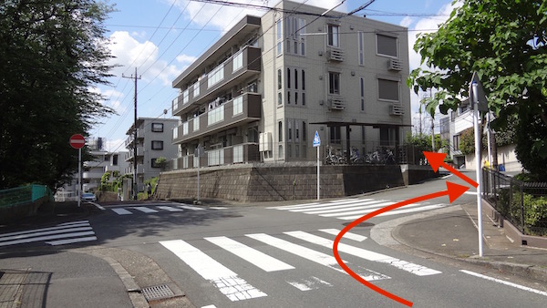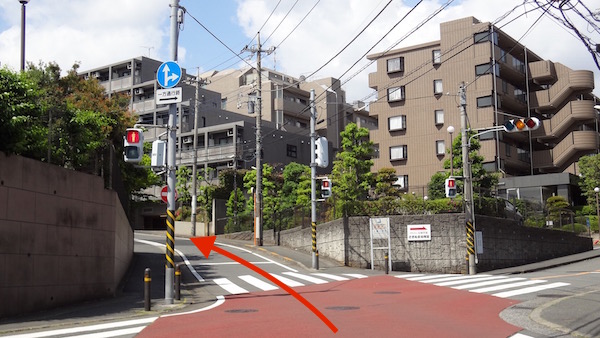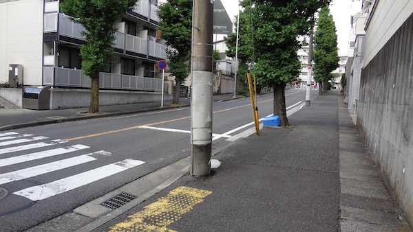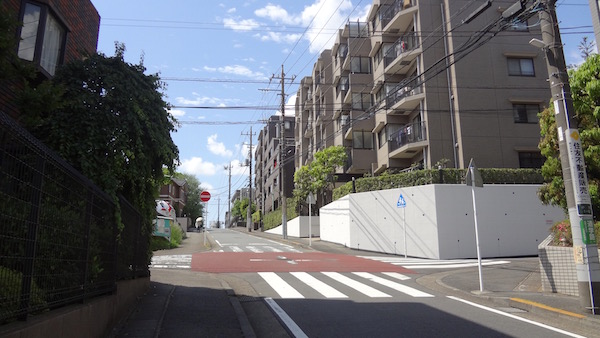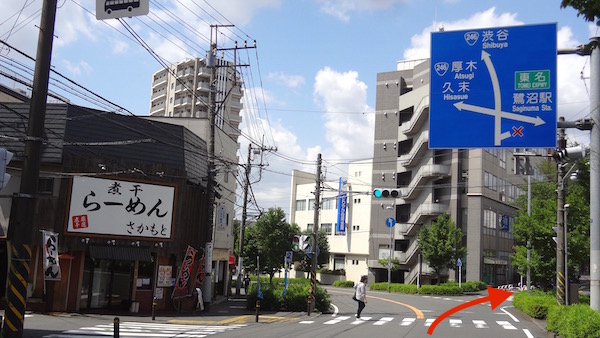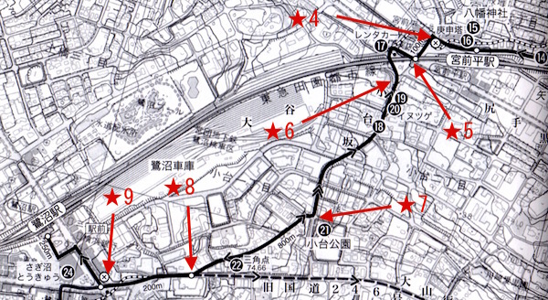 ★9の鷺沼交番前交差点に着いた。右へ行くと鷺沼駅だが、街道歩きは直進することになる。「鷺沼交番前」ということだが、交差点の角には交番はない。