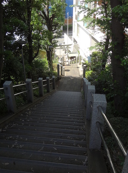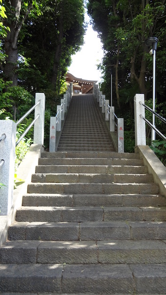 八幡神社は高い場所にあるためこの長い階段を登っていく。