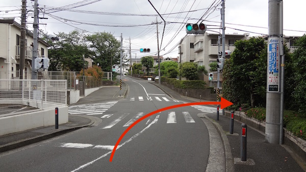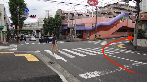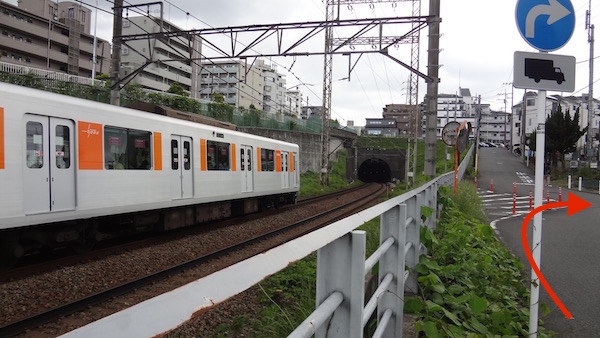 しばらく進み、右側に田園都市線をくぐるガードが見えたらそこを右折。