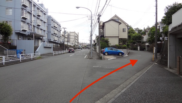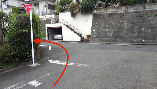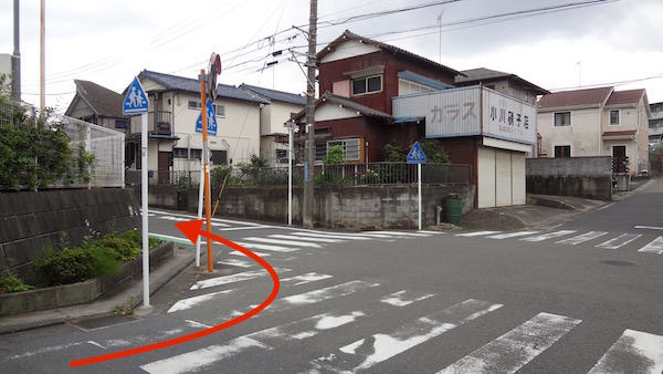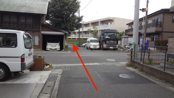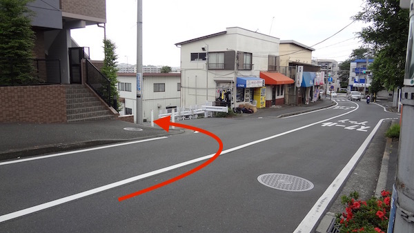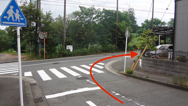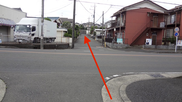 地蔵堂下交差点からしばらく下り、写真の場所を左折する。目印がなく少し迷うかもしれない。