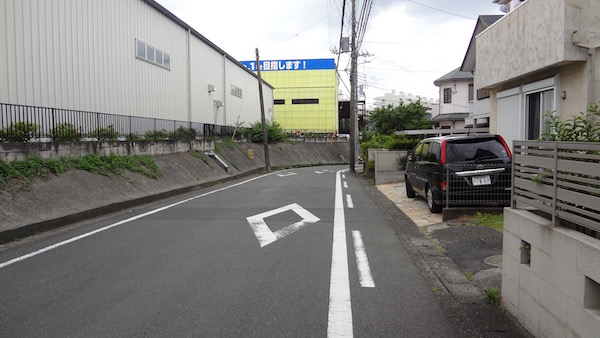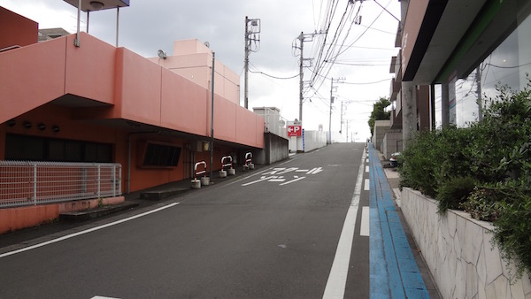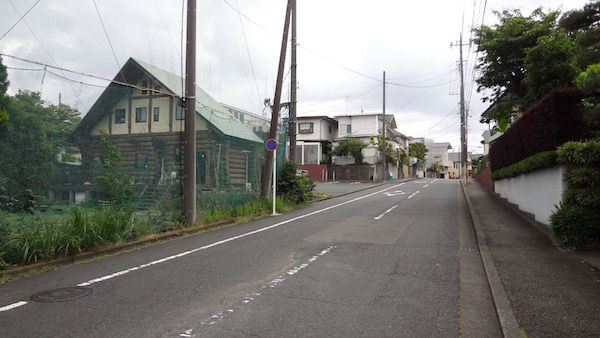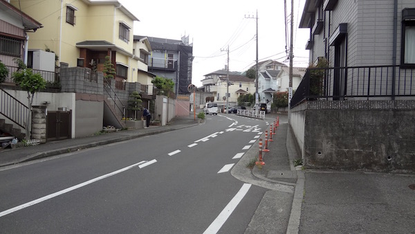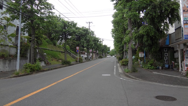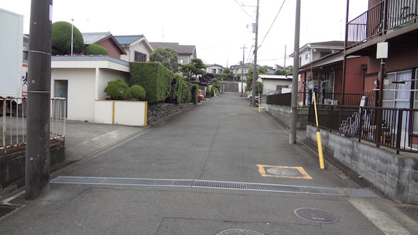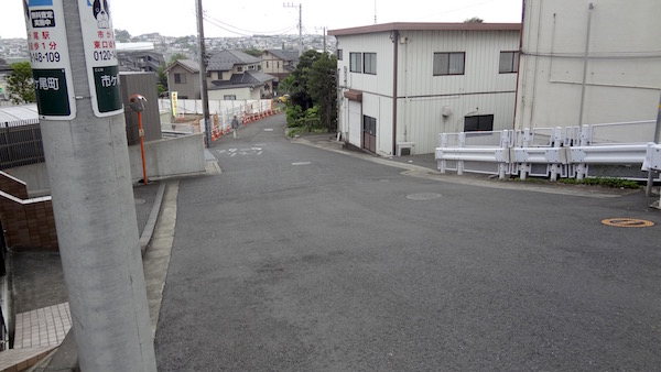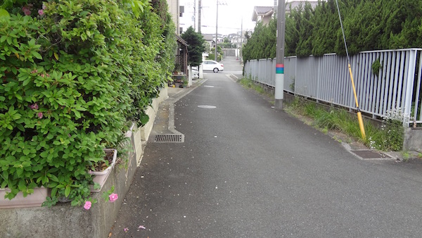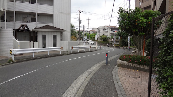 老人福祉センターの先はやや右にカーブして下り坂になっている。