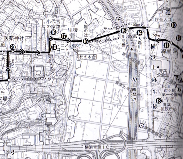 (17)一里榎があった。おそらくこれだろう。案内板には「●●古木指定 エノキ 横浜市」と書いてあった。「●●」は読み取れなかった。