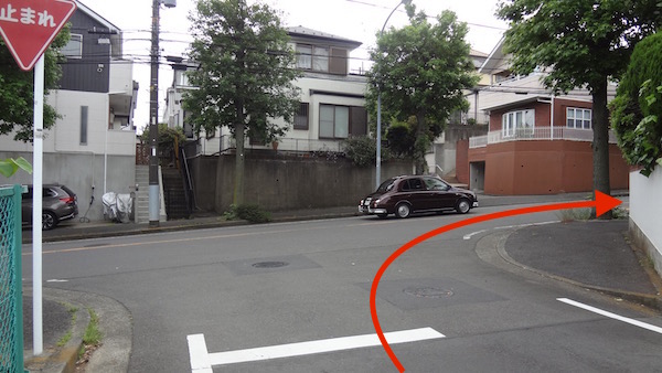 つつじヶ丘第二公園を左手に見ながら回り込む。そして次の交差点を右折する。