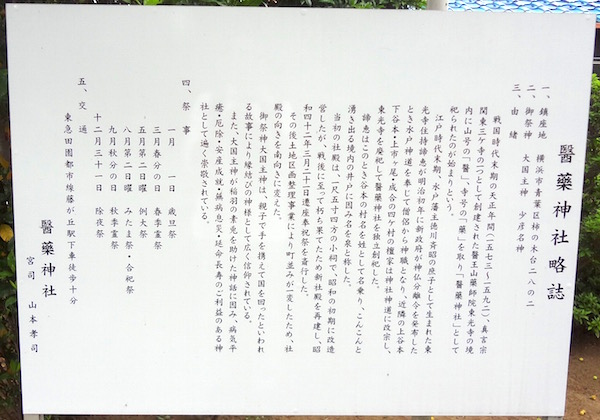 東急田園都市線藤が丘駅下車徒歩10分 醫藥神社 宮司 山本孝司」